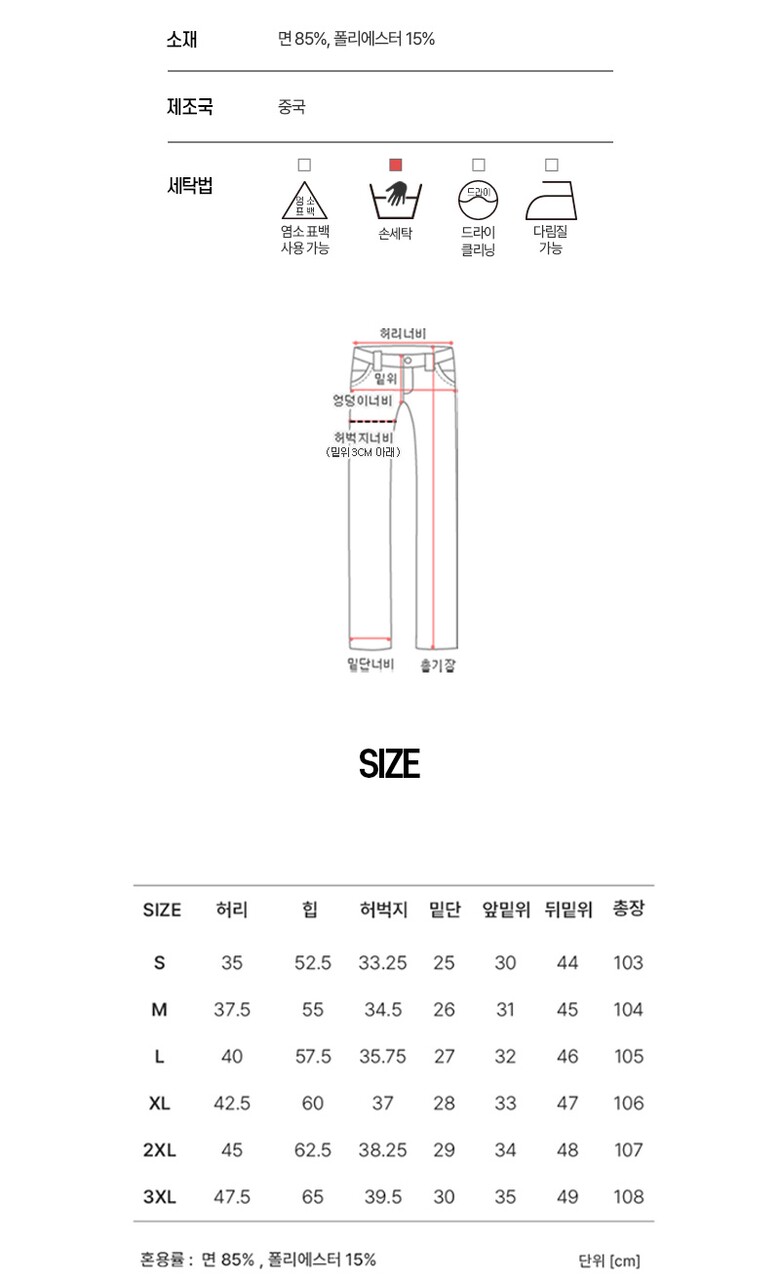 3. 치수 | S,M,L,XL,2XL,3XL |