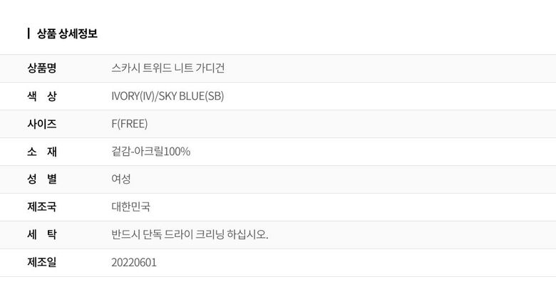 | 6. 세탁방법 및 취급시 주의사항 | 상세페이지 참조 |