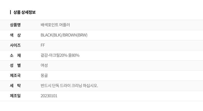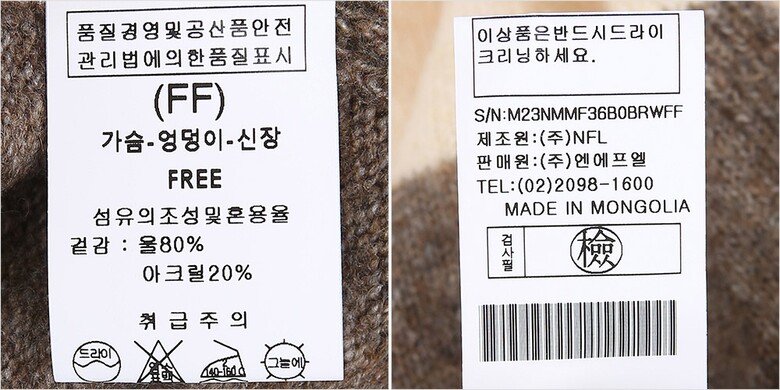 | 2. 소재 | 겉감-아크릴20% 울80% |