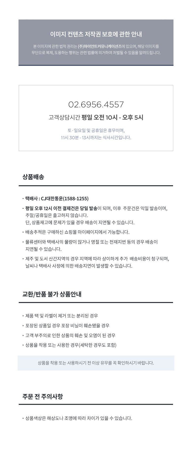 상품불량에 의한 반품, A/S, 품질보증 및 피해보상 등에 관한 사항은 소비자 분쟁해결기준(공정거래위원회 고시) 구매자가 미성년자인 경우에는 상품 구입시 법정대리인이 동의하지 아니하면 미성년자 본인 또는 법정대리인이 구매취소 할 수 있습니다. |