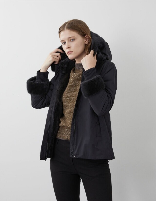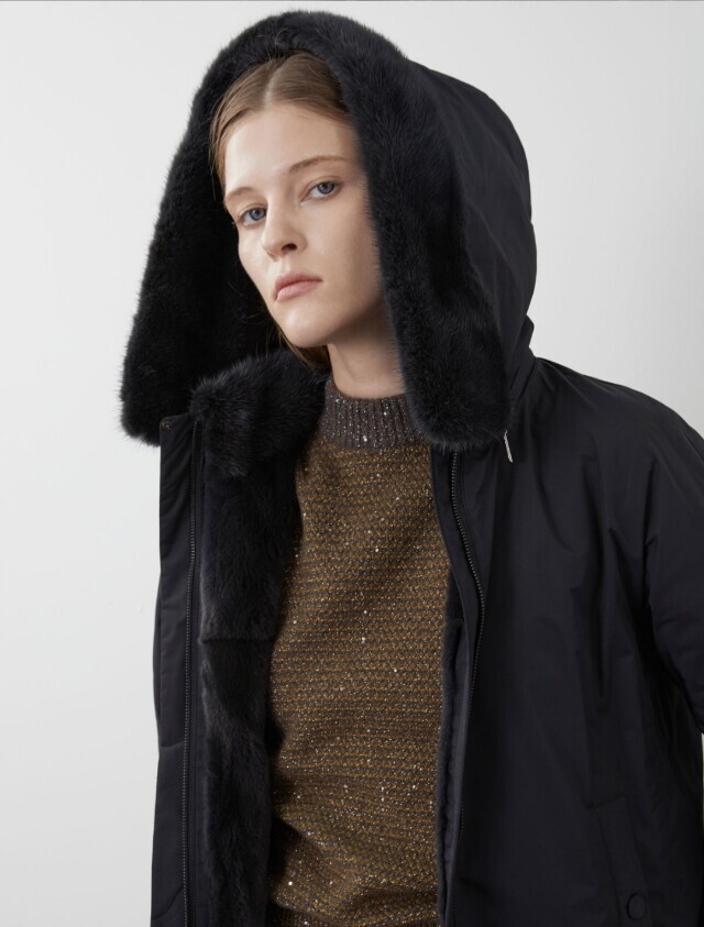 밍크가 넥션을 감싸주여 여성스러우면서 감각적은