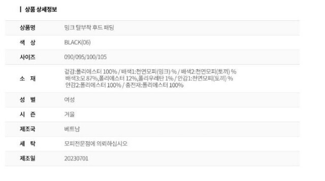 | 6. 세탁방법 및 취급시 주의사항 | 상품상세참조 |