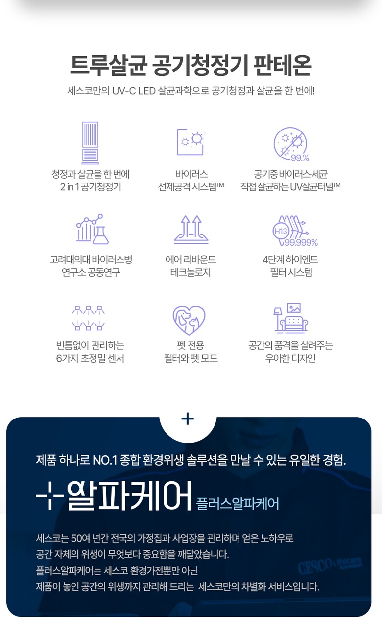 세스코 트루살균 공기청정기 판테온 (20평/포레스트 그린) EADS541