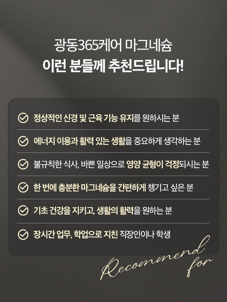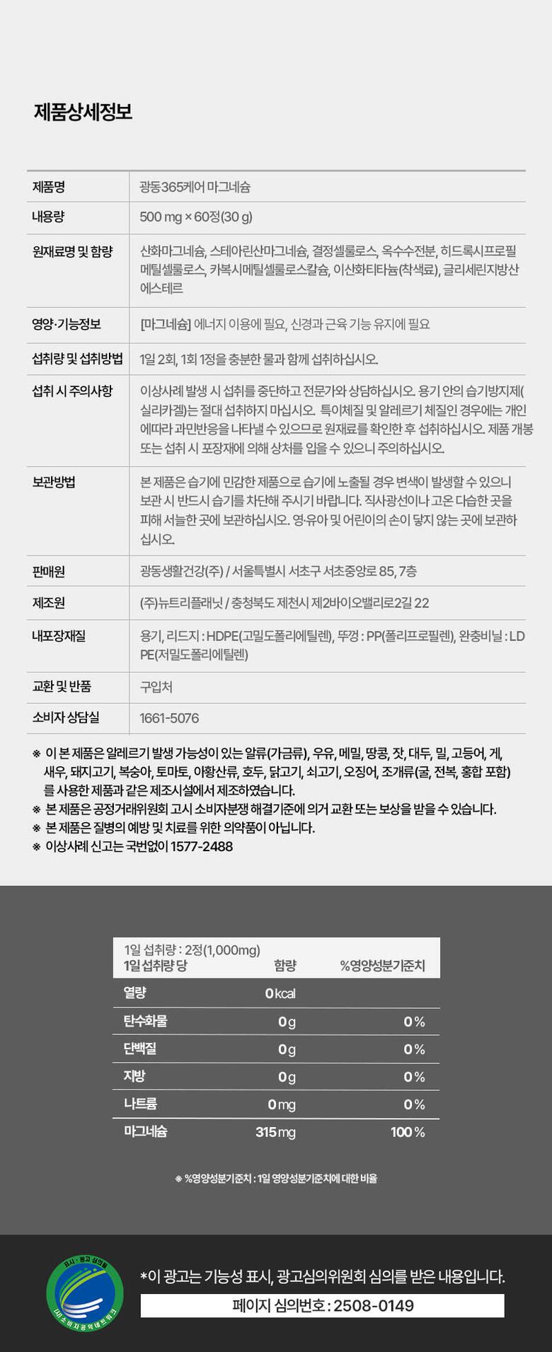 | 1. 제품명 | 광동365케어 마그네슘 |
