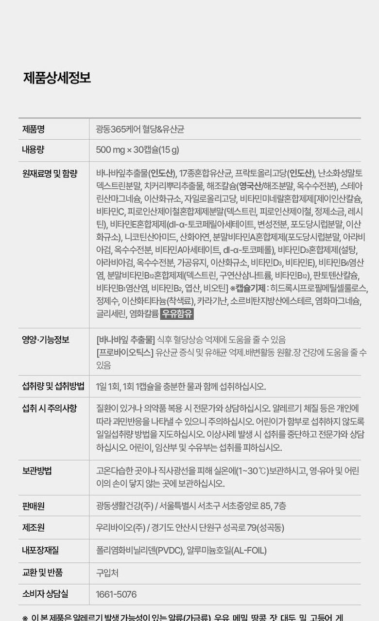 | 1. 제품명 | 광동365케어 혈당&유산균 |