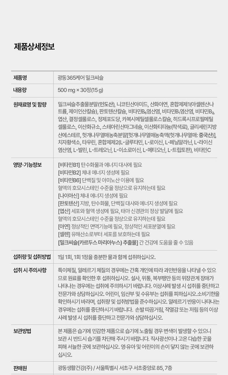 | 1. 제품명 | 광동365케어 밀크씨슬 |