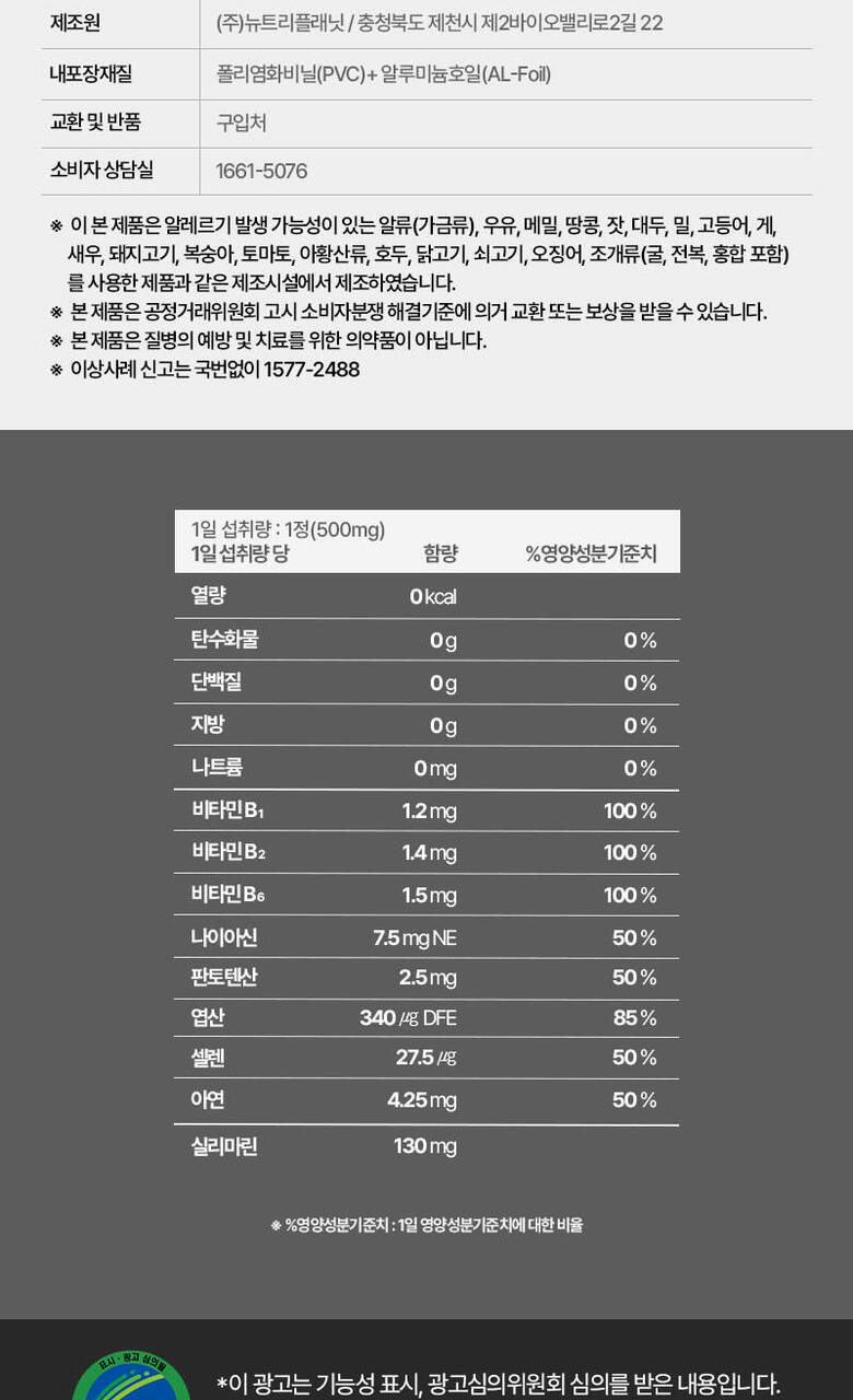 | 6. 원재료명 및 함량 | 상세 설명페이지 참조 |