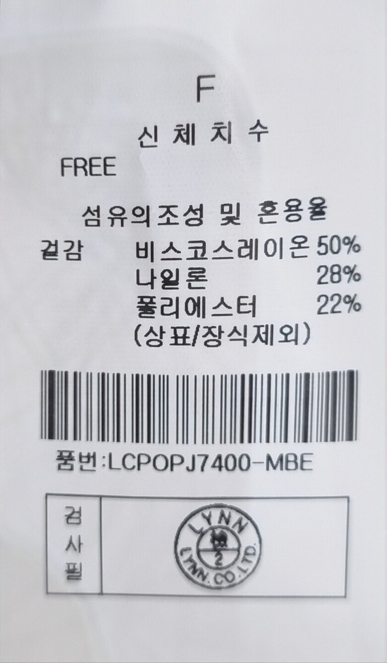 | 1. 제품 소재 (섬유의 조성 또는 혼용률을 백분율로 표시, 기능성인 경우 성적서 또는 허가서) | 상품상세참조 |