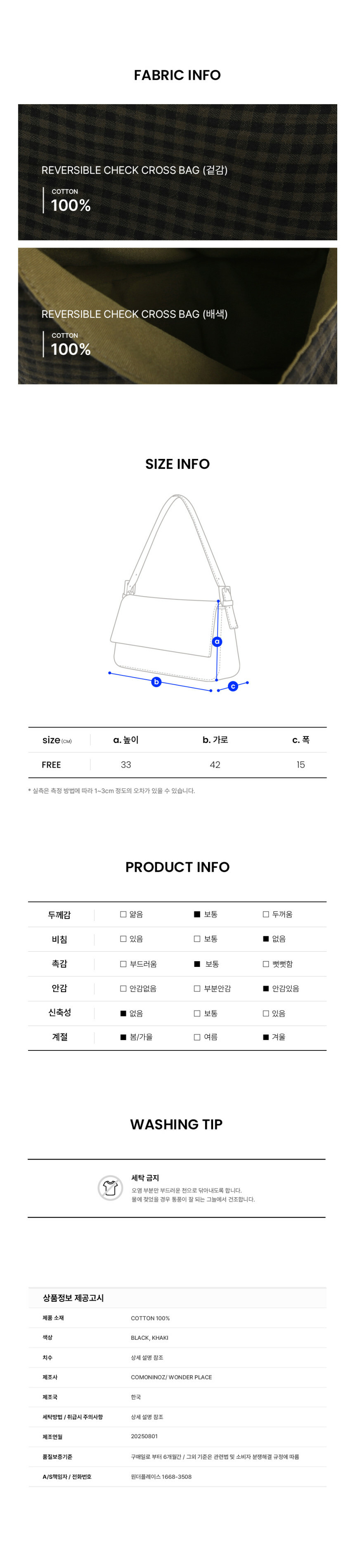 꼬모니노즈 [CN]REVERSIBLE CHECK CROSS BAG (WW9N3TIAB101)
