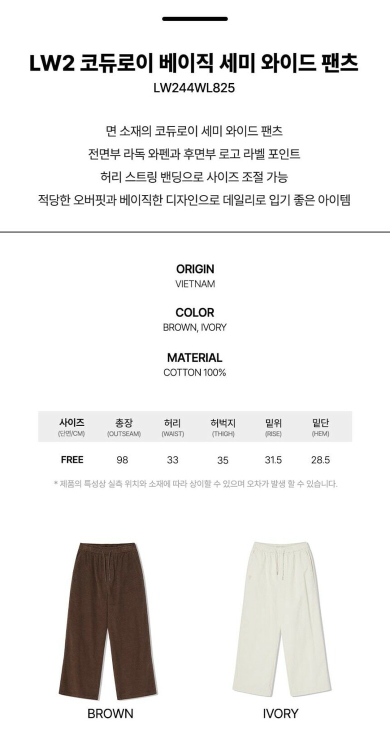 [라이프워크] WOMAN) LW2 코듀로이 밴딩 팬츠 (LW244WL825-12)