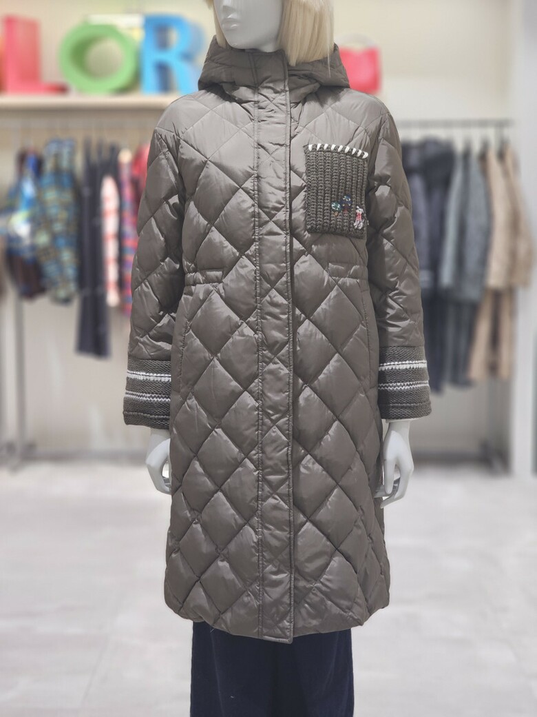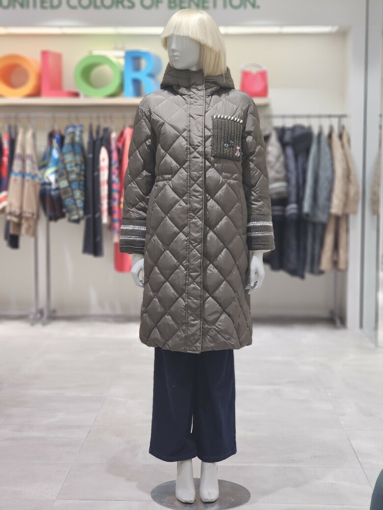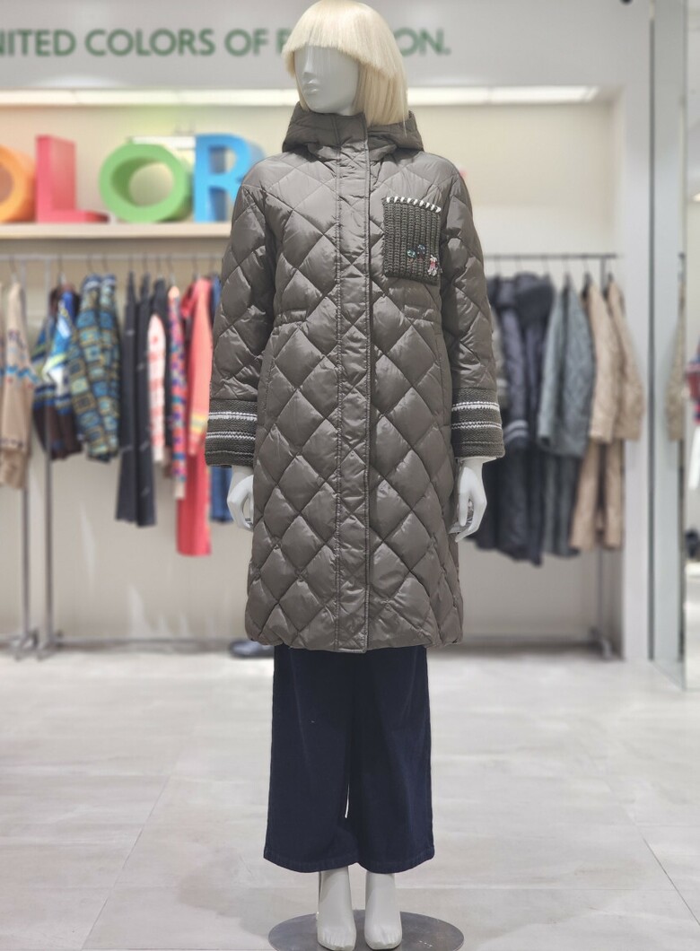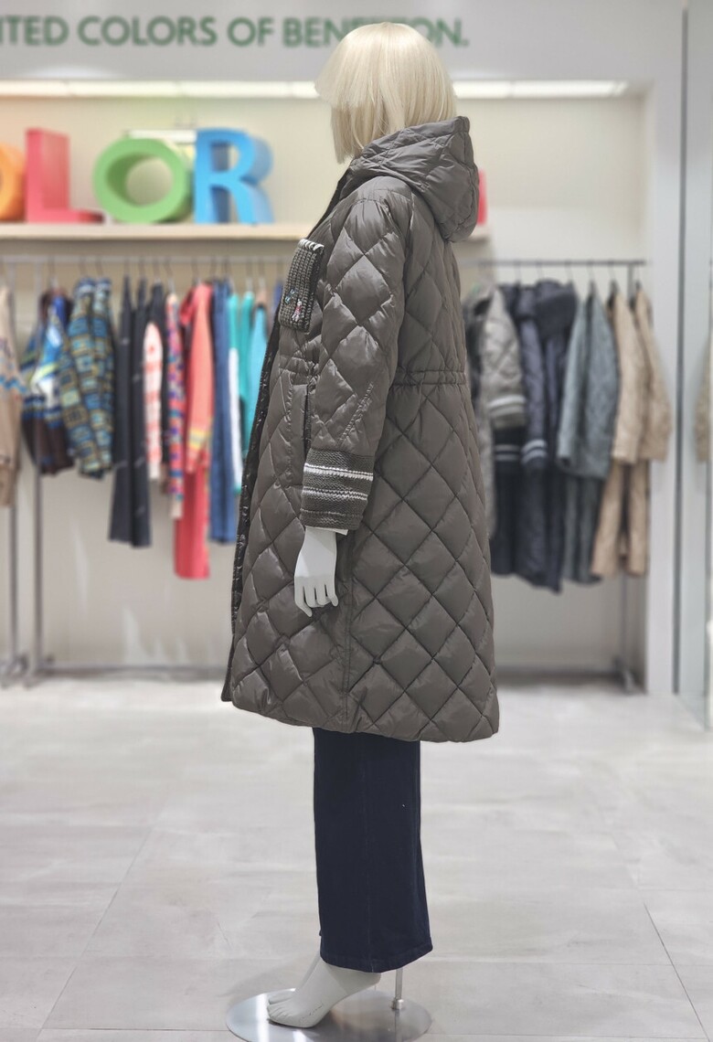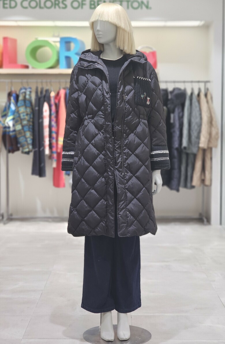 베네통 다이아 퀼팅 후드 롱 구스 패딩 점퍼 BAPDA3561