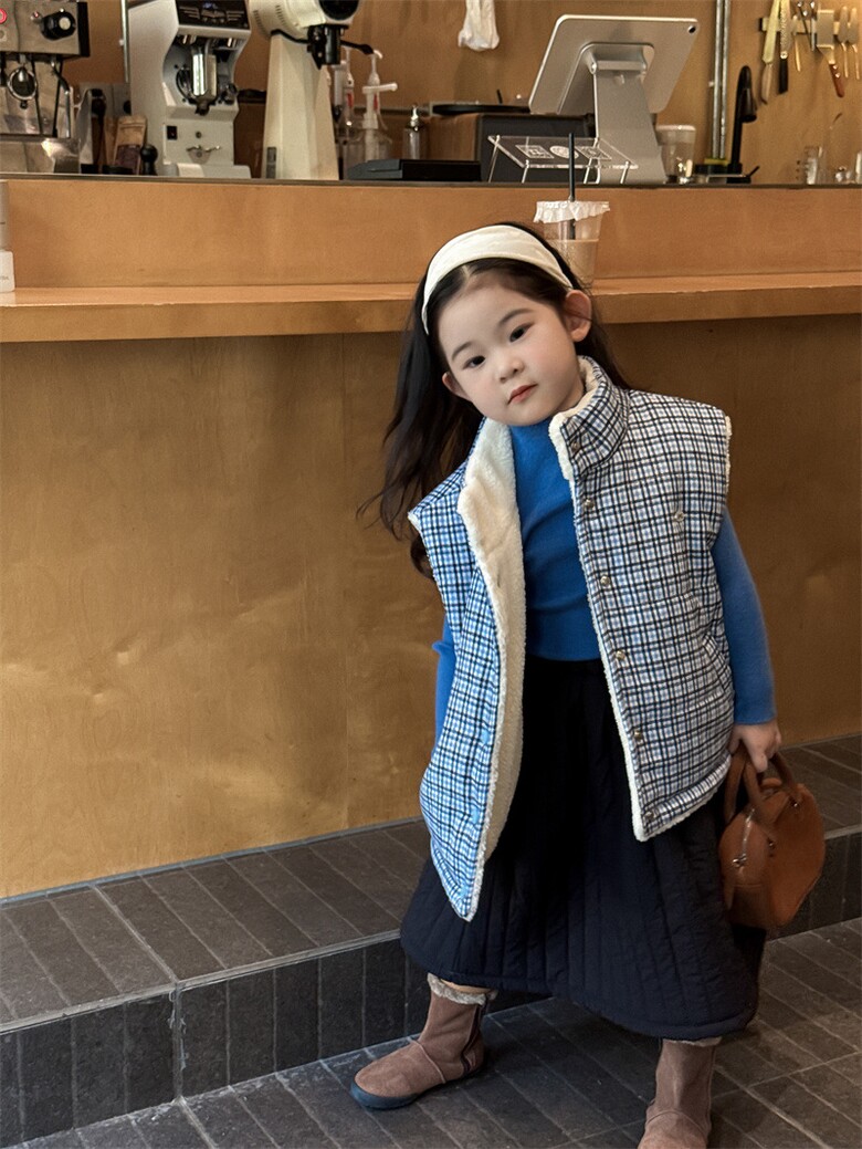 안젤 체크 퀼팅 조끼 R15777