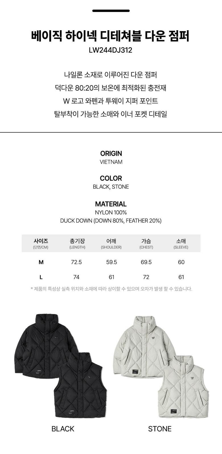 [라이프워크] 베이직 하이넥 디테쳐블 다운 점퍼 (LW244DJ312-39)