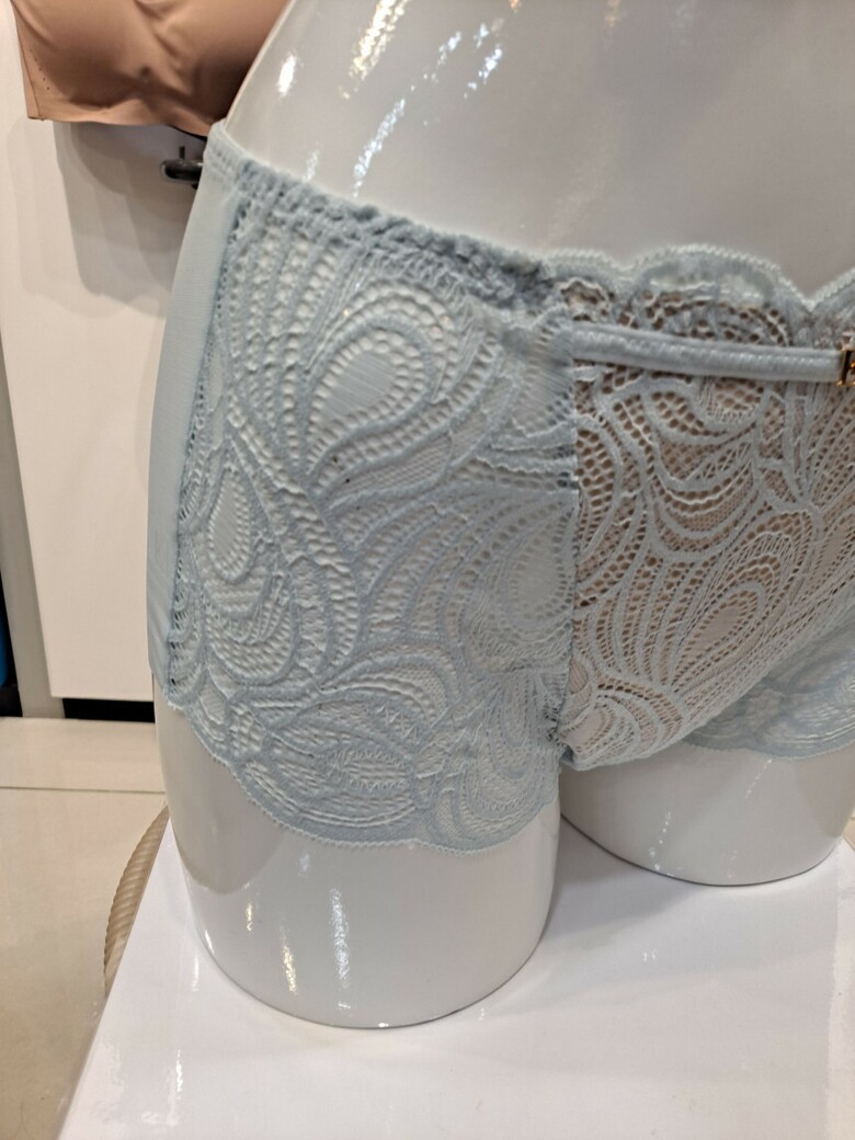 뒷판 중앙 레이스와 PN망을 매치하여 여성스러움을 강조하고 하이웨스트 스타일의 팬티 로