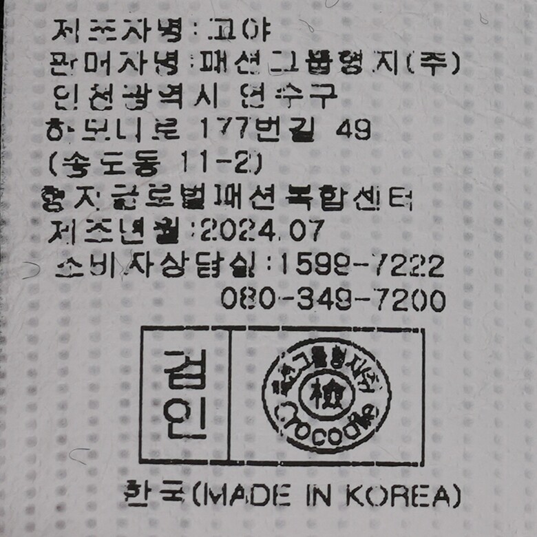 | 6. 세탁방법 및 취급시 주의사항 | 상품상세참조 |