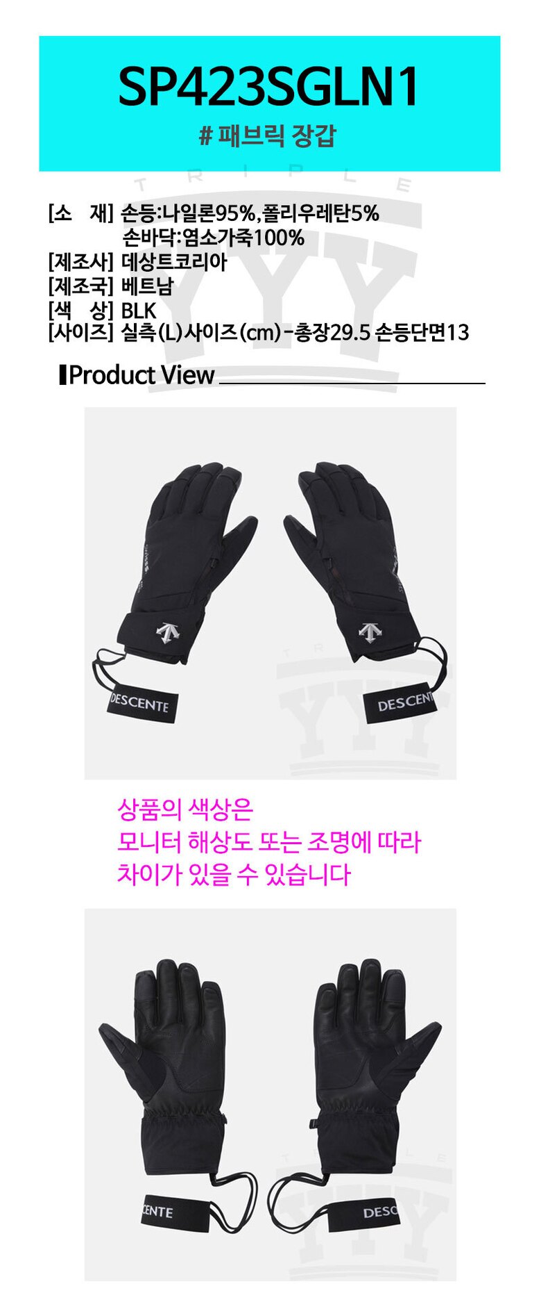 | 2. 소재 | 손등:나일론95%,폴리우레탄5%_손바닥:염소가죽100% |