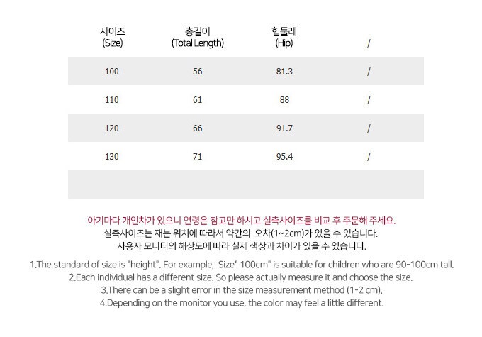| 6. 세탁방법 및 취급시 주의사항 | 드라이클리닝 권장. 미온수에 유아용 중성세제로 손세탁가능, 그늘건조권장 |