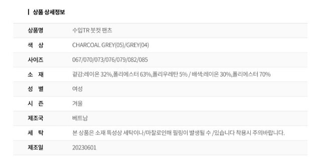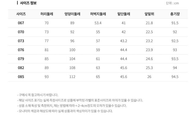 | 6. 세탁방법 및 취급시 주의사항 | 상품상세참조 |