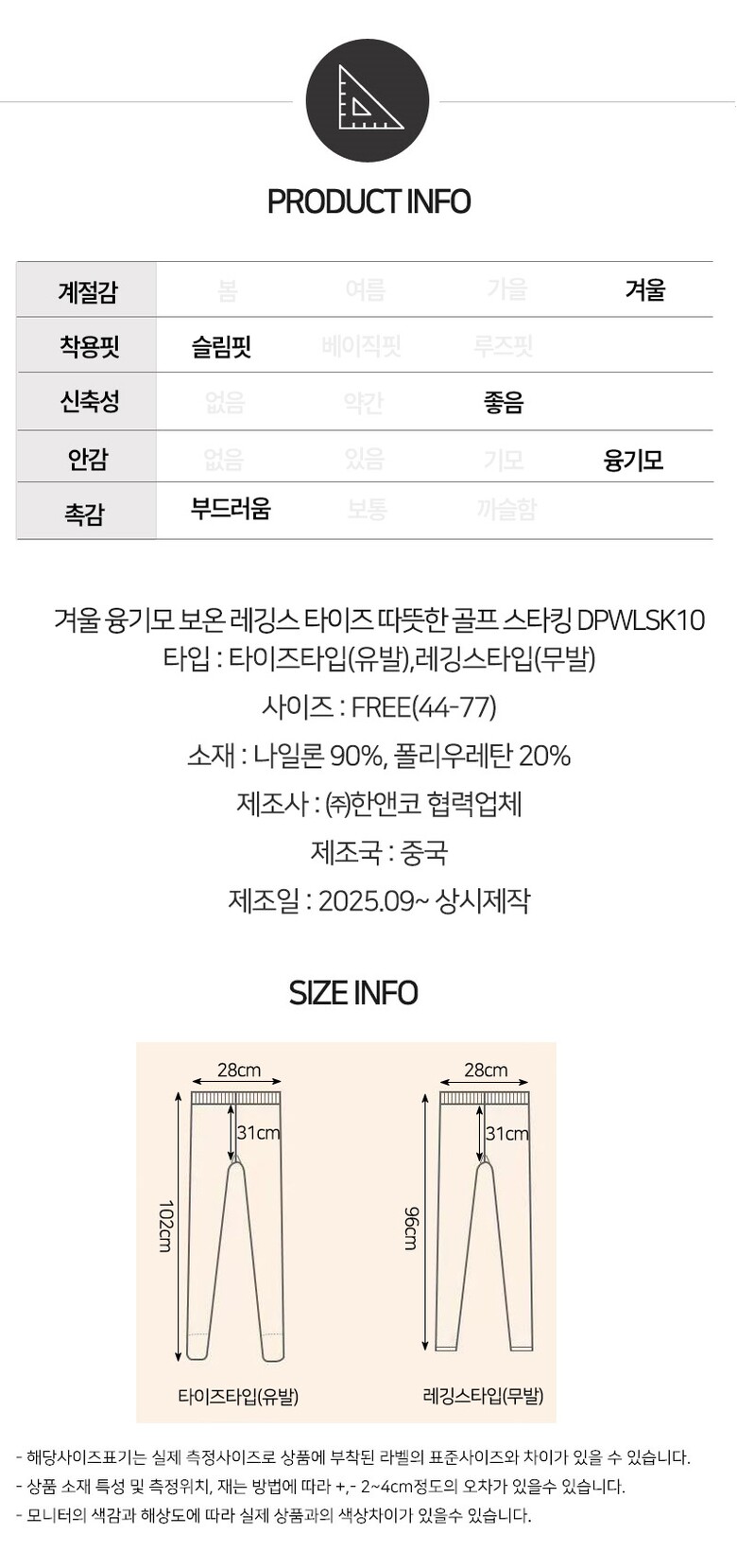 [김영주골프] 겨울 융기모 보온 레깅스 타이즈 따뜻한 여성용 골프스타킹 DPWLSK10