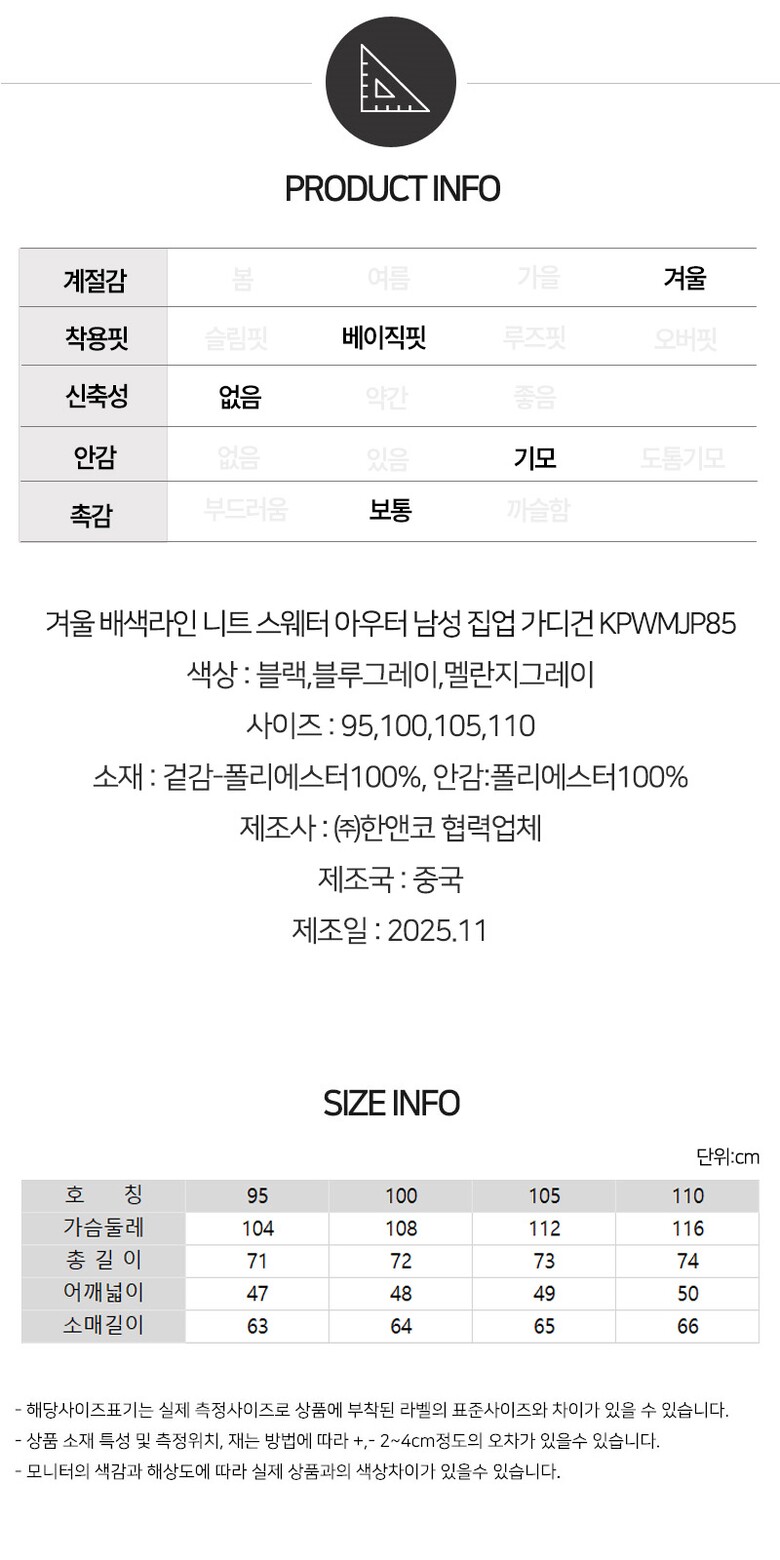 | 3. 치수 | 95,100,105,110 |