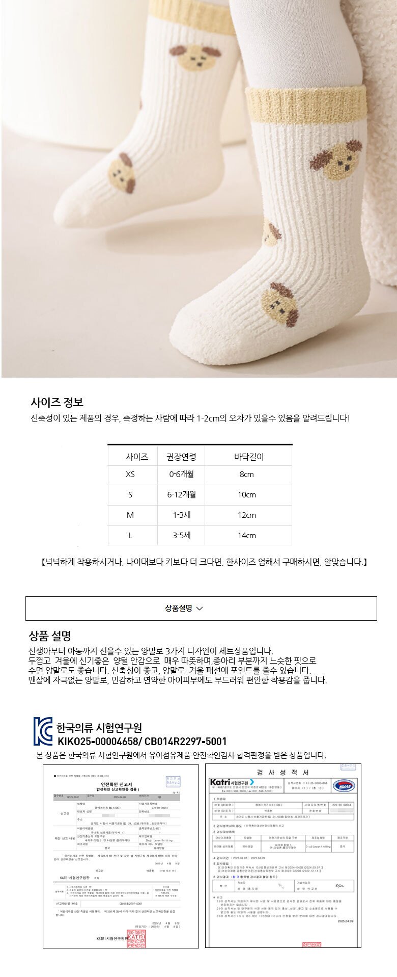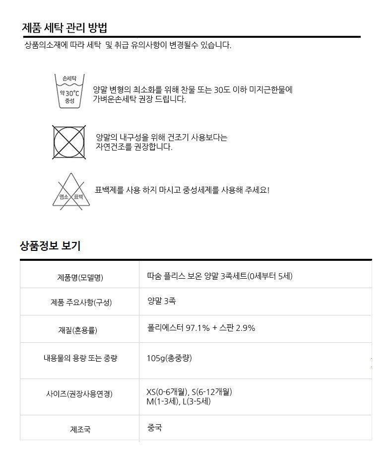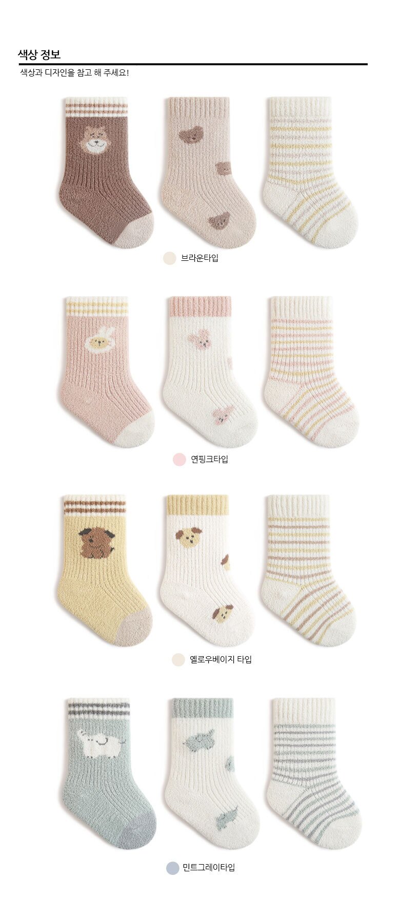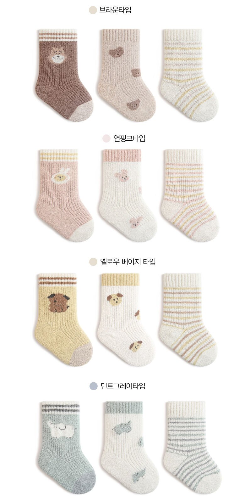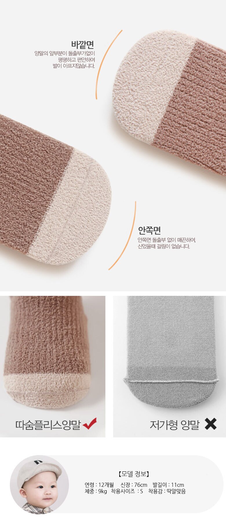 따숨 아기 플리스 보온 양말 3족세트(0-5세)