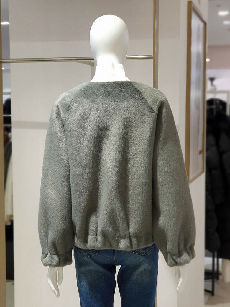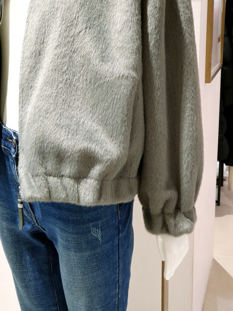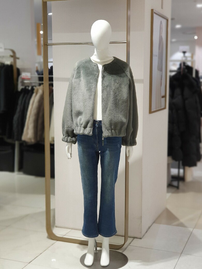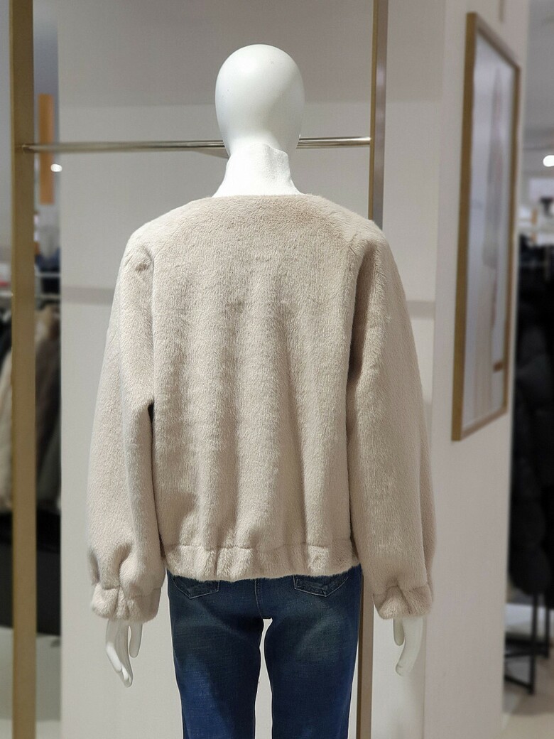 포근한 터치감의 부드러운 페이크 퍼 무스탕 재킷입니다.