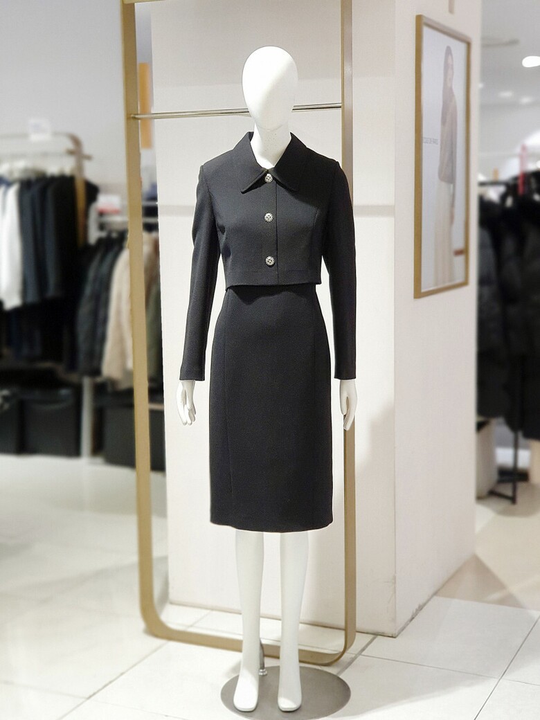 스탠 칼라 재킷이 레이어드 된 디자인이