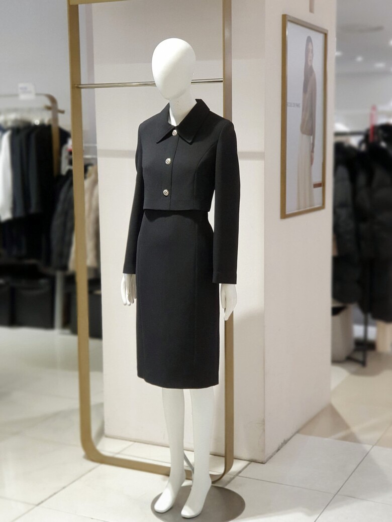 간결한 실루엣의 H 라인 스커트 밑단 슬릿 디테일이