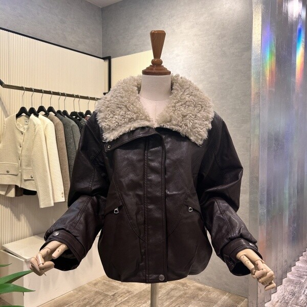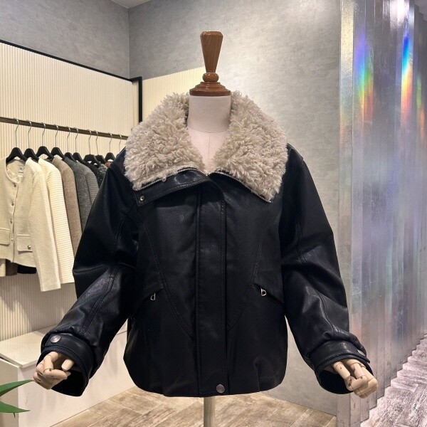 2025년 f/w 신상?페이크 레더 부클 카라 점퍼 입니다.