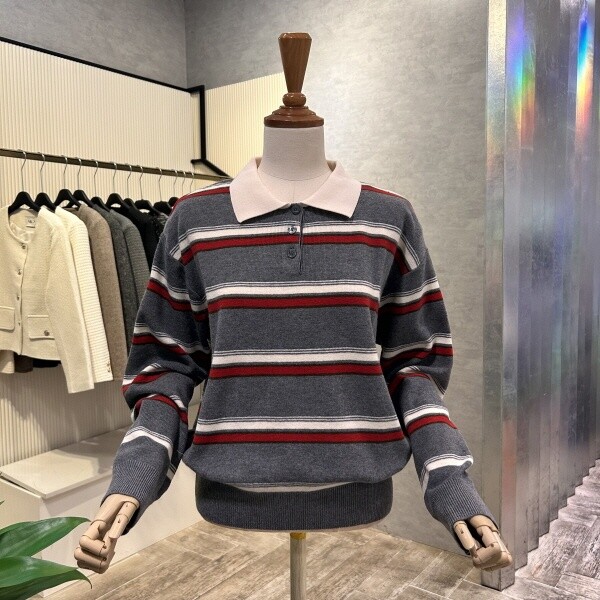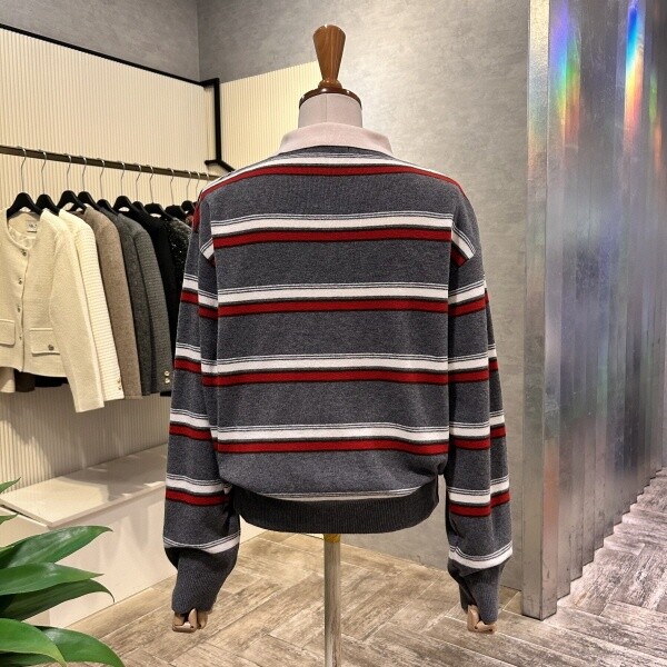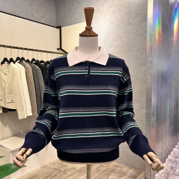 2025년 f/w 신상?스트라이프 카라 배색 니트 입니다.