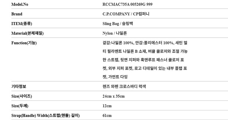 CP컴퍼니 가방 RCCMAC735A 005269G 999 렌즈 와펜 크로스바디 럭색 슬링백 당일발송