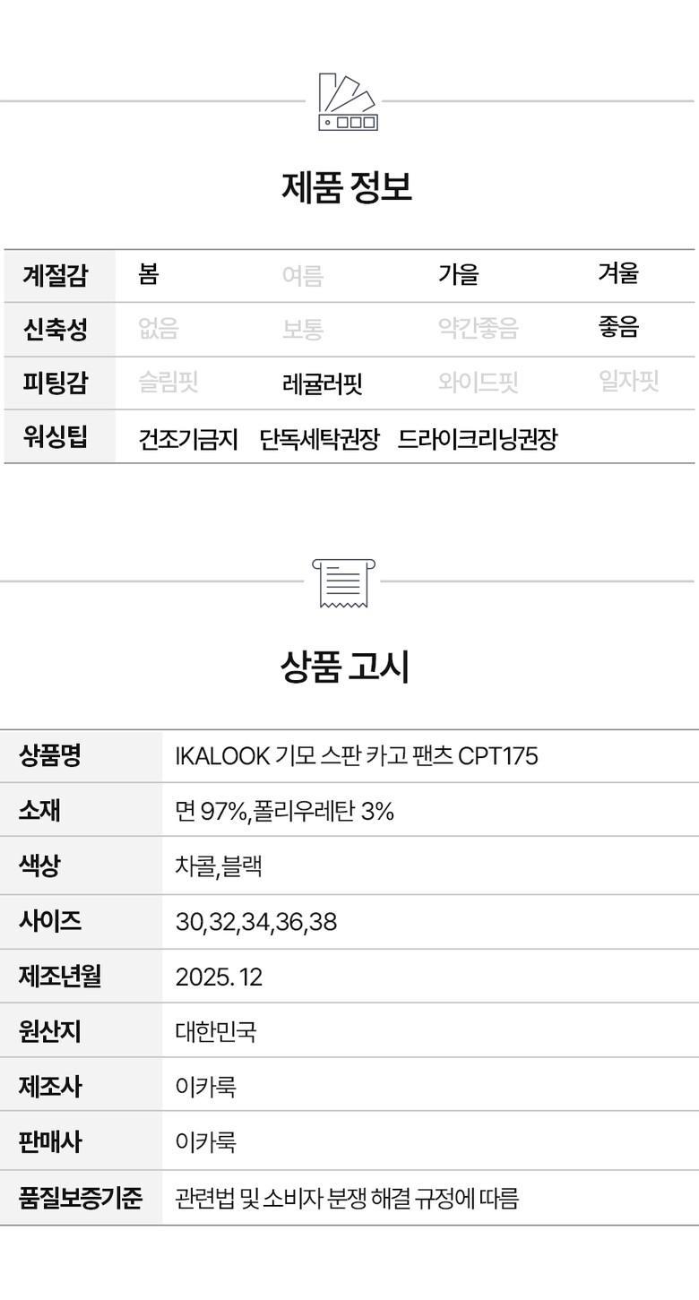 IKALOOK 기모 스판 카고 팬츠 CPT176