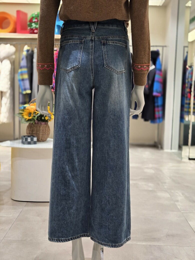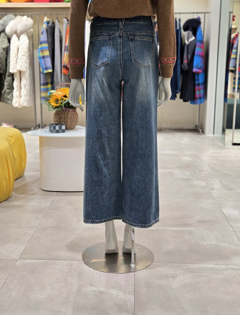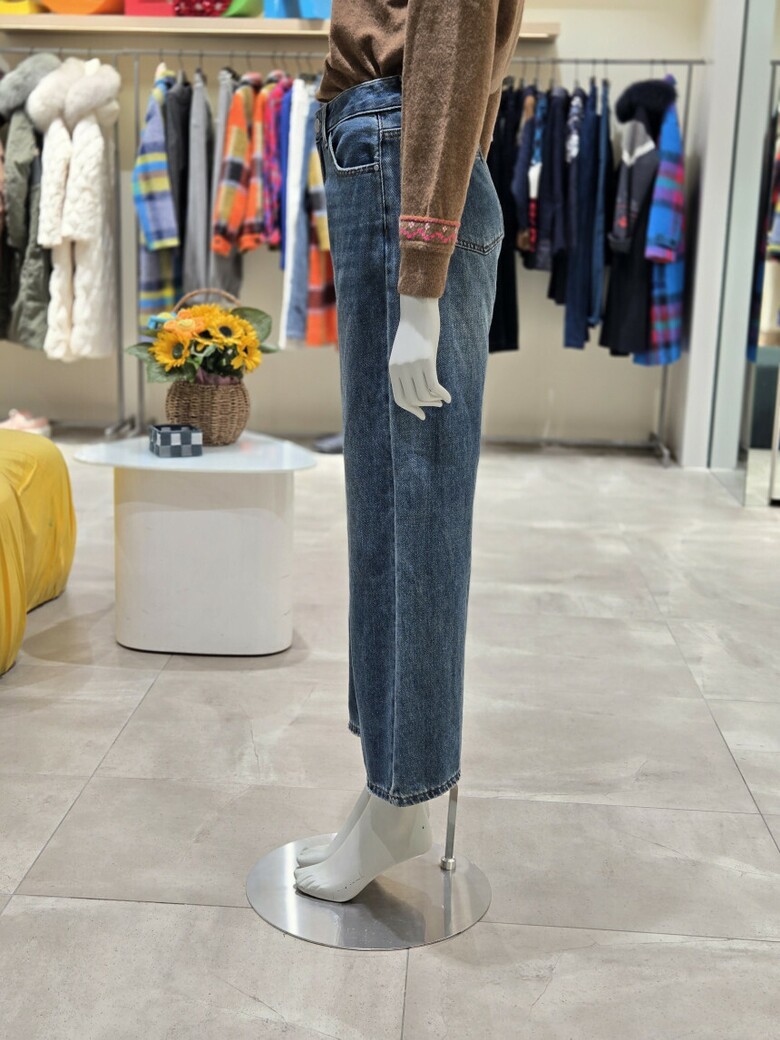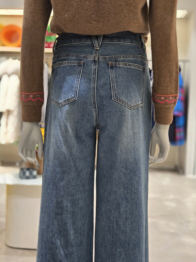 빈티지한 워싱이 은은하게 적용된 통일자핏 데님 팬츠.