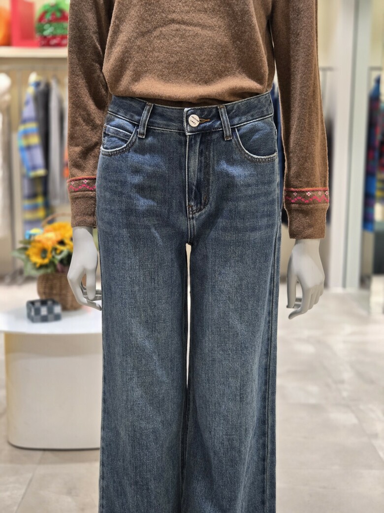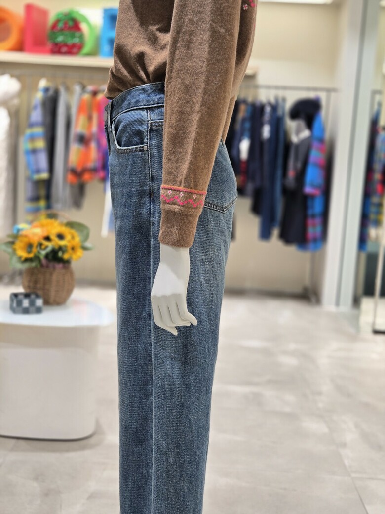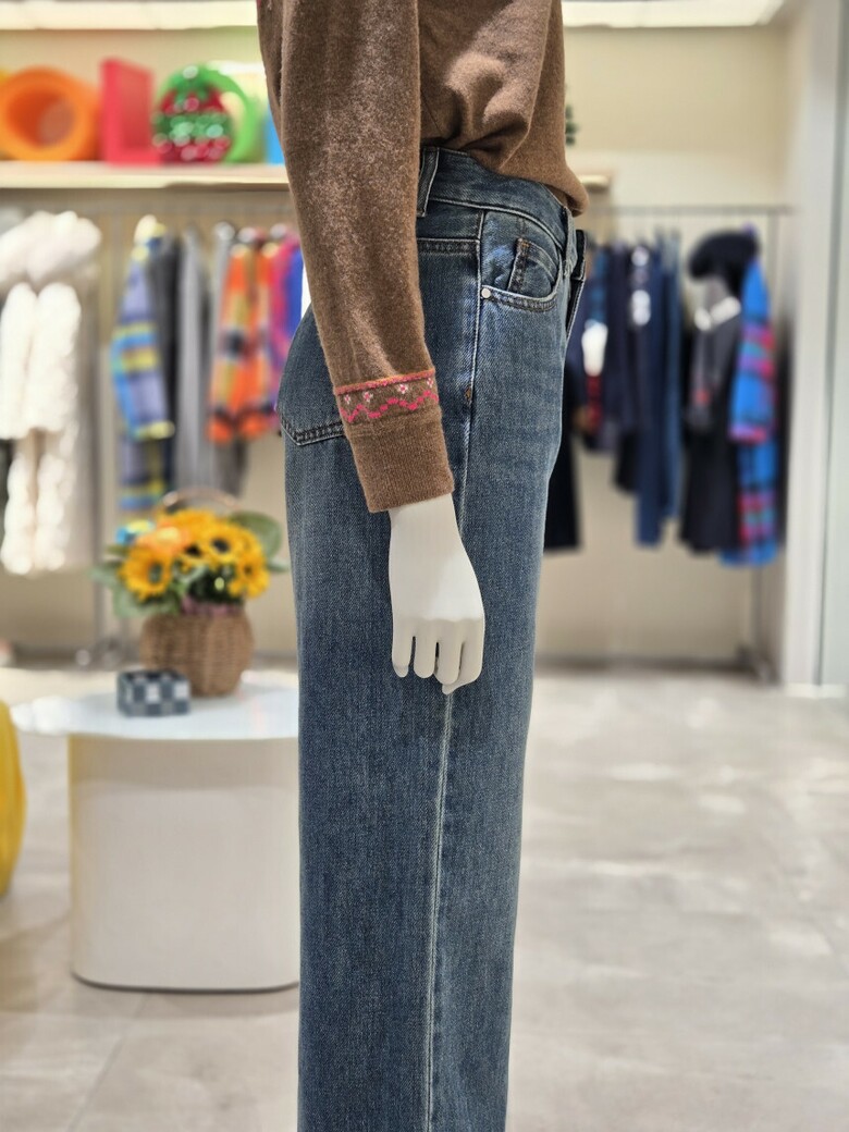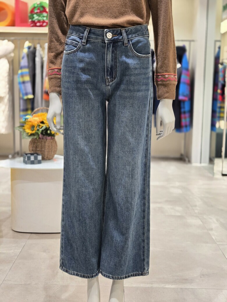 빈티지한 워싱이 은은하게 적용된 통일자핏 데님 팬츠.