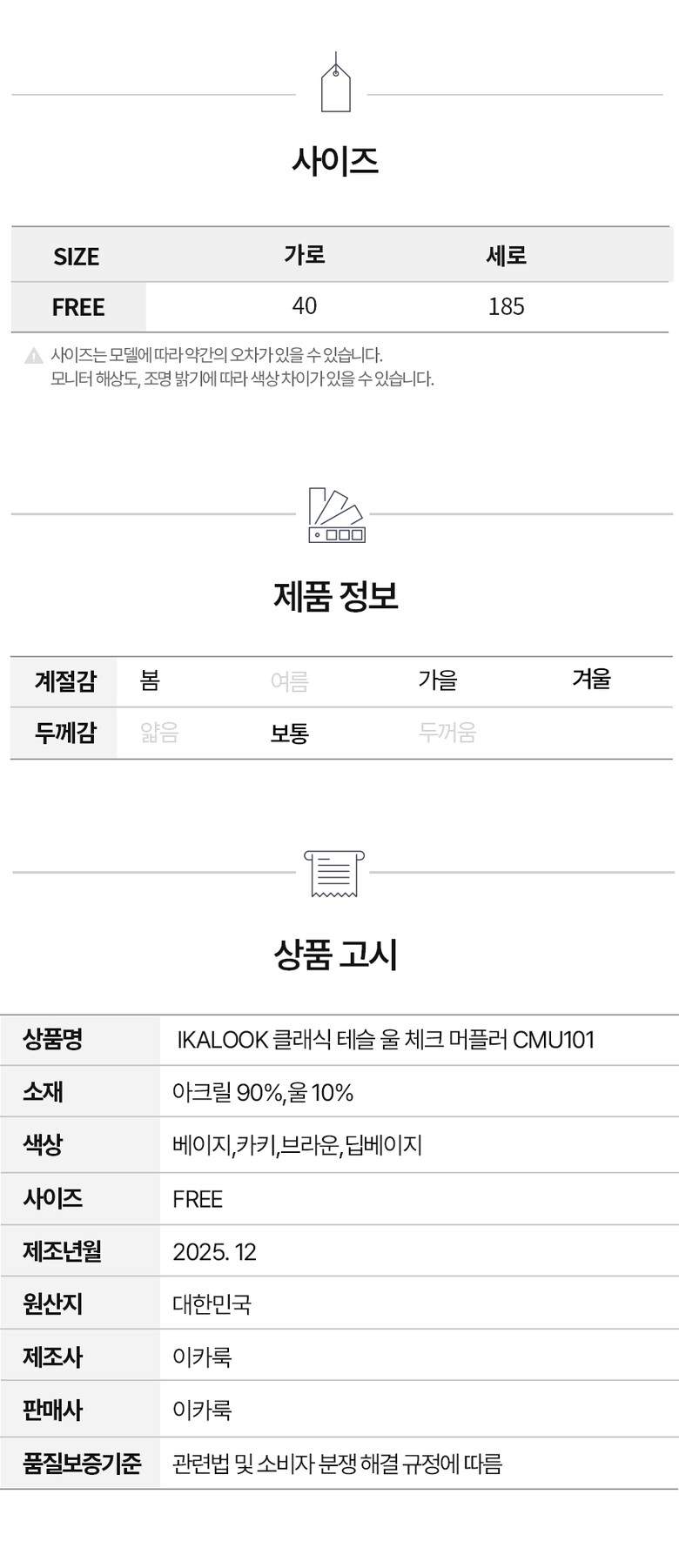IKALOOK 클래식 테슬 울 체크 머플러 CMU101