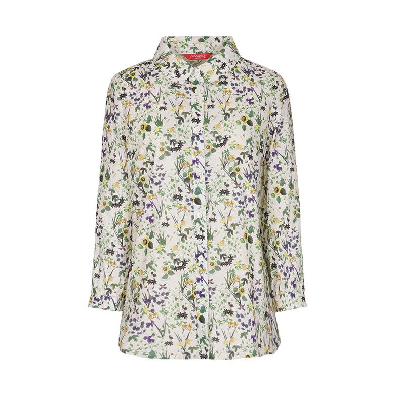 간절기용 코튼 아사의 리버티 플라워 프린트 블라우스로 착용시 가볍고 통풍이 잘되며|*| 아우터 또는 단품으로 코디하기 용이한 아이템.