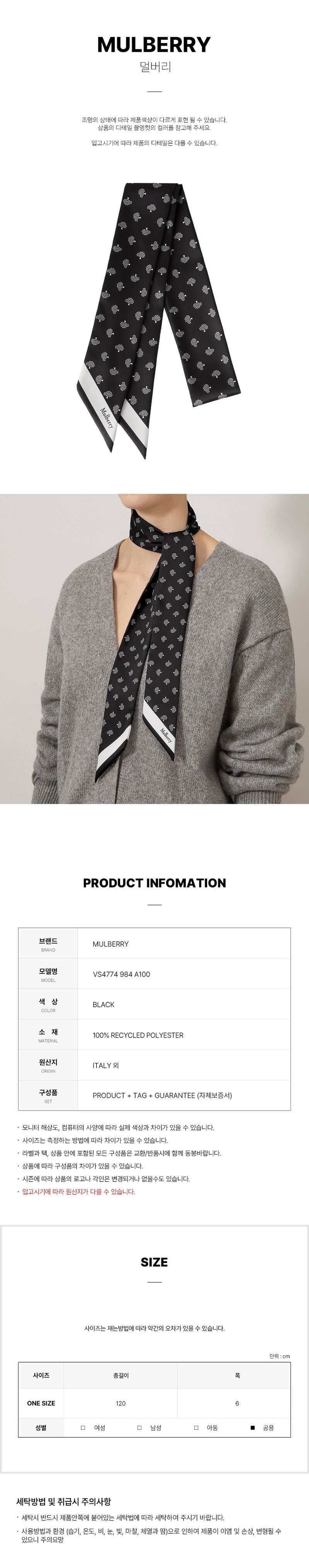 (멀버리) FW25 공용 나무 스키니 스카프 VS4774 984 A100