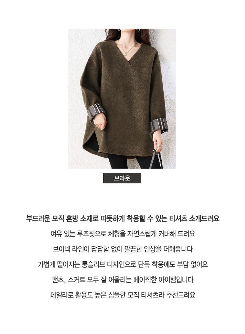 [~77까지]처티 루즈핏 브이넥 모직 롱슬리브 티셔츠