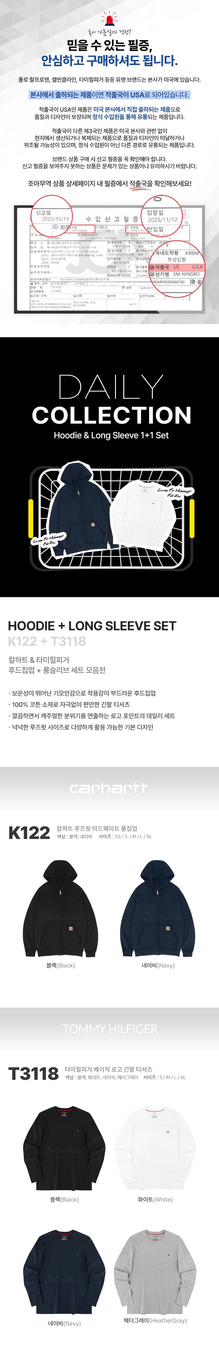 [SET] 칼하트 루즈핏 기모 후드집업+타미힐피거 로고 긴팔 티셔츠