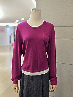 [발렌시아]메리노울 혼방 라운드넥 배색 니트 25AGK64