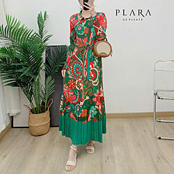 플라라 (88까지)플리츠비비드롱배색원피스+벨트SET