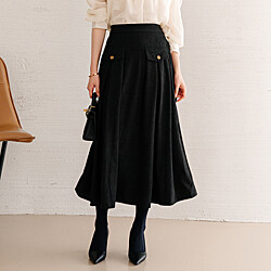 투포켓 스웨이드 플레어 스커트_M2509SK074C