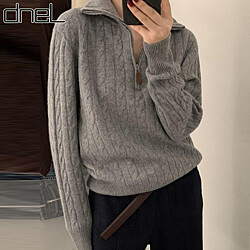 [오조크(OZOC)] 울 캐시미어 펄버튼 하프넥 니트 (택가격: 56000원)