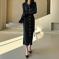 [SET]타이 버튼 니트 롱원피스_M2502OP007A