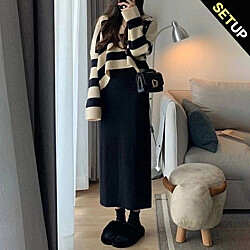 [SET]줄배색 니트 원피스 2종 세트_O2511SE607D