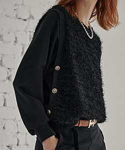 사이드 버튼 샤기 레이어드 블라우스