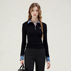 (예쎄) 체크 배색 카라 슬림 골지 니트(S4FKN034A)