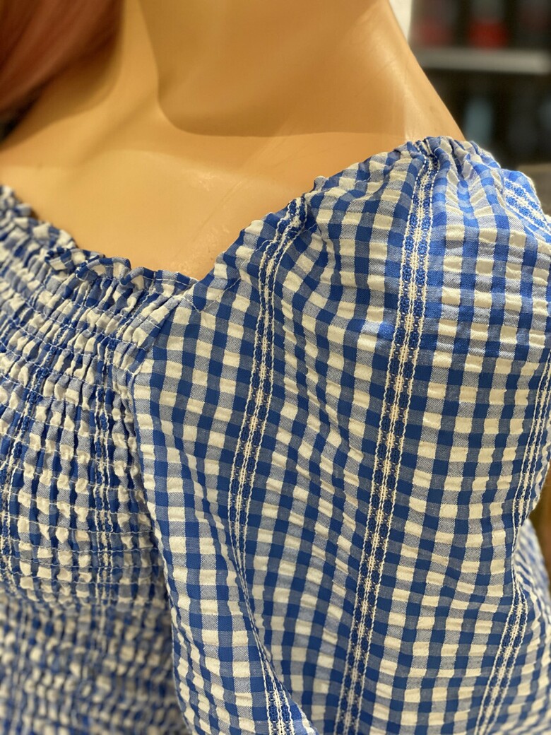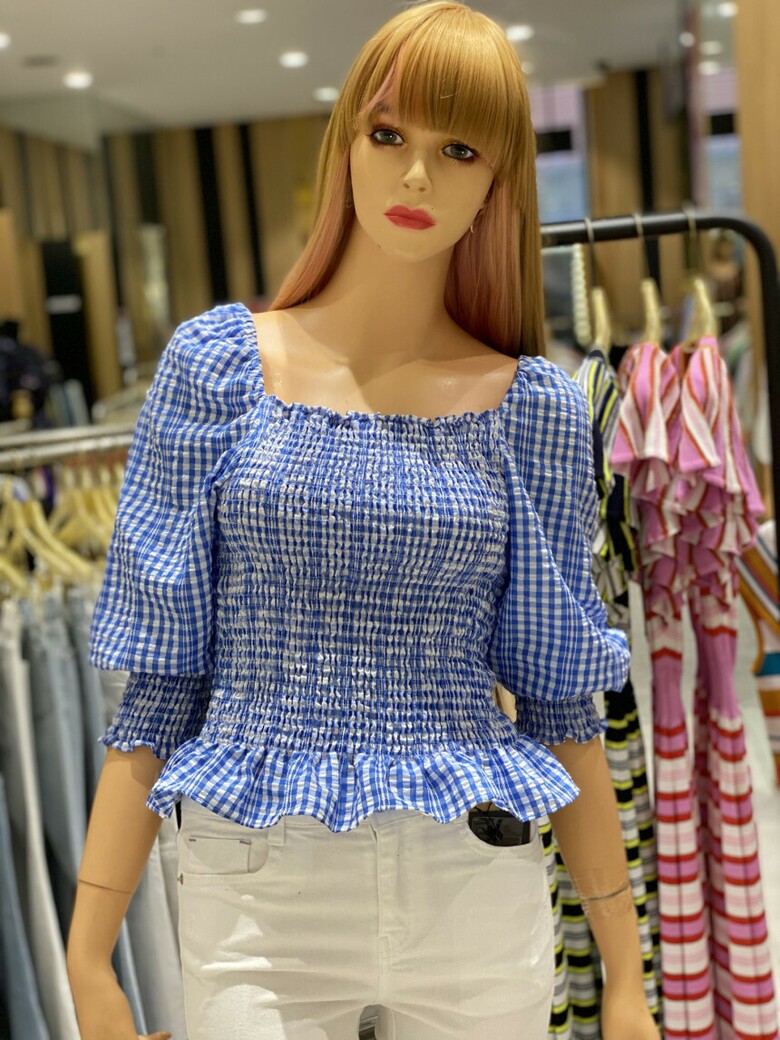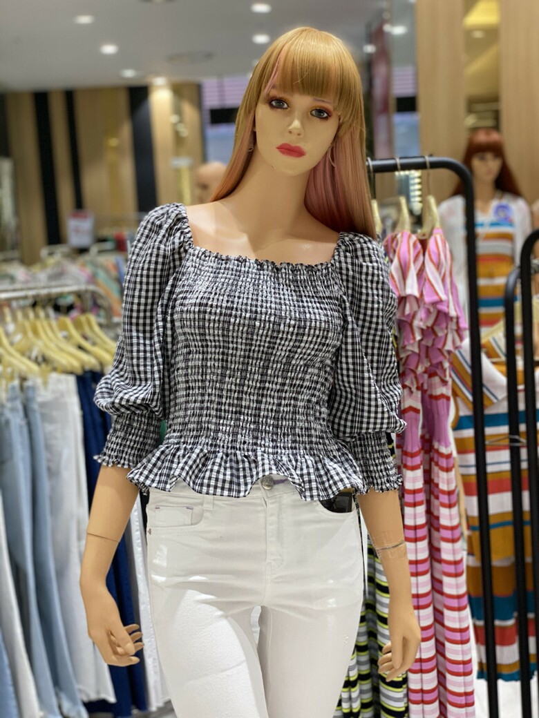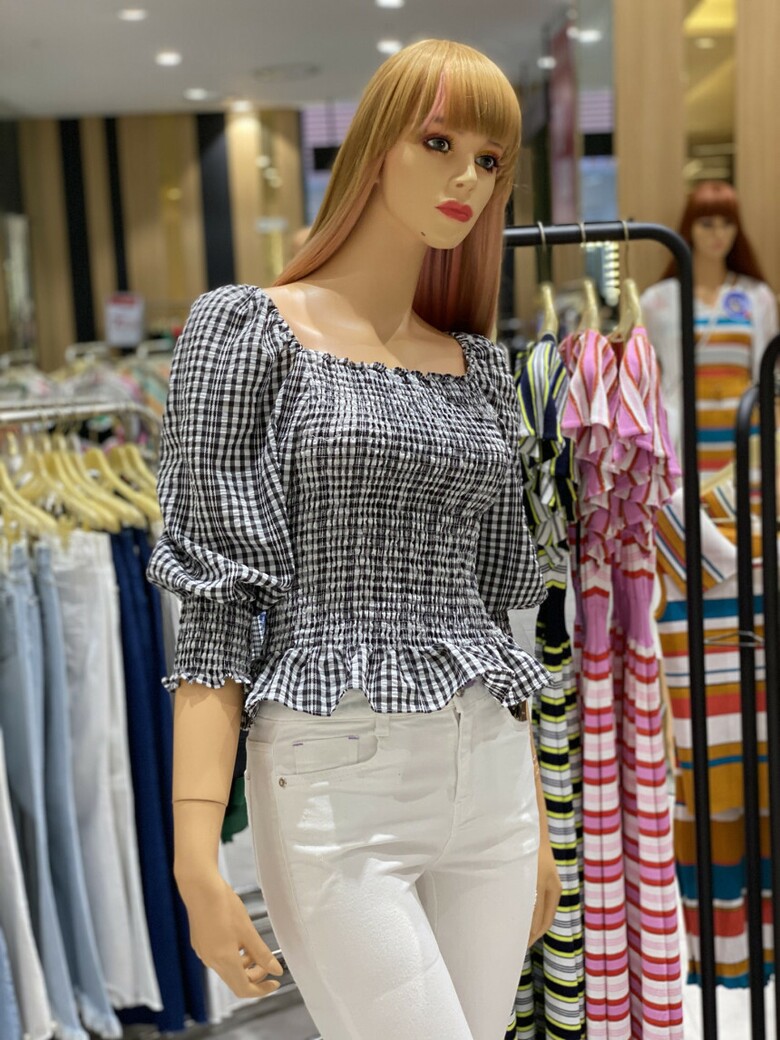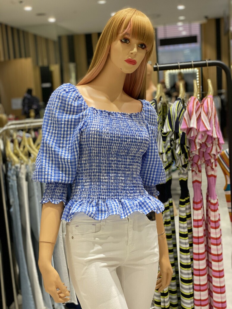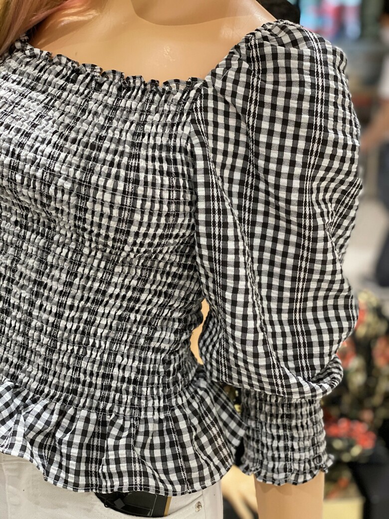 반팔 퍼프소매와 체크무늬가 큐티함을 더해주며