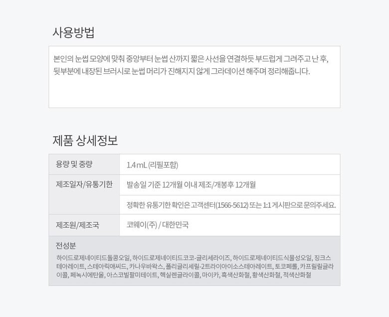 | 4. 사용방법 | 본인의 눈썹 모양에 맞춰 중앙부터 눈썹 산까지 짧은 사선을 연결하듯 부드럽게 그려주고 난 후,