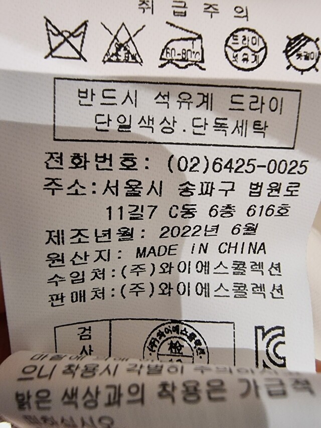 | 6. 세탁방법 및 취급시 주의사항 | 상품상세참조 |